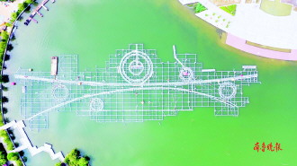 日前,记者来到凤鸣湖公园一探究竟。在现场记者看到,现场建设如火如荼,数十名工人在凤鸣湖中进行搭建工作。现场一工作人员告诉记者,该项目总投资近6000万元,工期20天,由山东晟润水务集团公司招标,北京水艺科技有限公司承建,薛城区新城市政园林中心负责现场施工管理工作。市民有望在9月1日后看到“绽放”的盛大场景。
