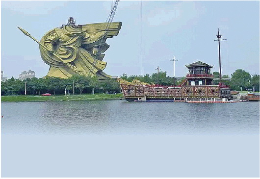 打着发展旅游拉动经济的旗号,湖北省荆州市斥资1.729亿元,耗时2年,打造了高达57.3米的巨型关公铜像。营业4年,关公像带来的收益不足1300万元。如今因未批先建,关公像正被拆卸,后搬迁新址重建。这项工程又将花费1.55亿元。