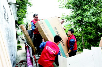 崭新的课桌、衣柜和小床,由志愿者配送