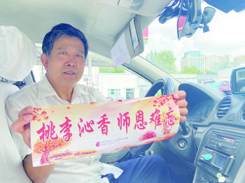 20辆中青出租教师节义运,贴有“桃李沁香师恩难忘”标识