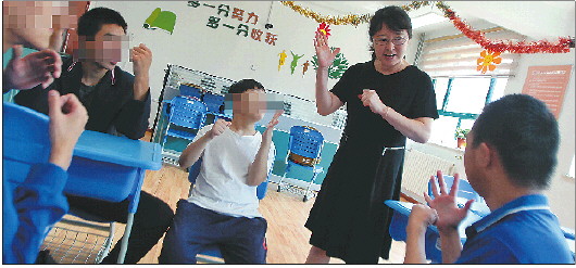 “因为孩子们的自理能力差,我们每天有擦不完的鼻涕、系不完的鞋带……并且工作远不止这些。”回忆入职初期,董秀萍感慨道,除了担任一年级学生数学、语文的教学外,还要辅助学生语言、肢体运动康复,很多八九岁的学生,连简单的“你好、再见”都无法清楚表达,两个字的词语,要重复几十甚至上百遍,才能教会。然而在与孩子的接触中,董秀萍从心里爱上了这群单纯、真诚、可爱的孩子,第一个学期过后,她选择了留下来。