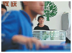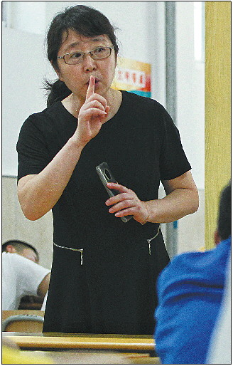 午饭过后,董秀萍为集体午休的学生们维持秩序。