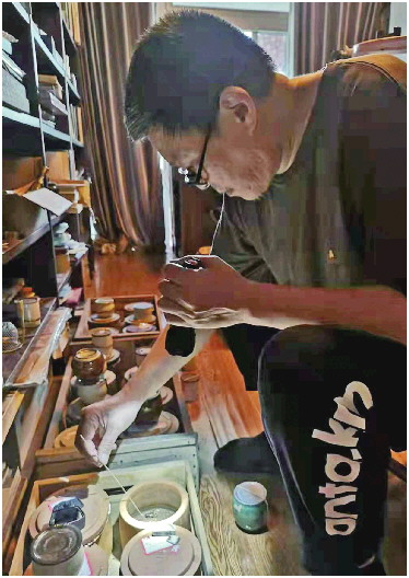 面前这些蟋蟀可都是白峰千里挑一,精挑细选出来的“大将军”。只见他手持着电筒,扫射着几个罐子里的蛐蛐,不时给各个罐中的蛐蛐喷水或者“打草”(用草梗挑逗蛐蛐,检测体质),有时还用放大镜细细查看……听着秋虫此起彼伏的鸣叫,非常惬意悦耳。