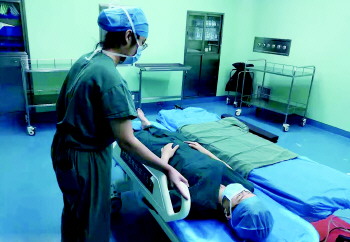 邱雨晴坦言,当她躺在熟悉手术床上时,尽可能的保持冷静,思考着手术步骤发展。望着无比熟悉的无影灯,光格外刺眼,她不由自主的闭上了眼睛,而闭眼的这一刻陷入了一片难以挣扎的黑暗。此时她双手被敷料紧紧的包裹住,感觉很拘谨,完全不敢动。手术间里安静的氛围让她喘不动气,尽管是最简单的仰卧位也让她很不舒适。身旁急促的脚步声、器械叮当声、仪器嘟嘟声,都让她感到一切都开始不受控制。床面很窄,她僵硬着不敢挪动,颈部悬空,身上也没有任何东西覆盖保温,她感到很冷……