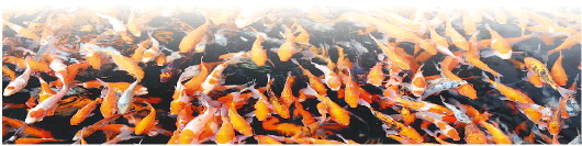 “别看现在水面平静,一投食就全上来了。”夏清军边说边用塑料瓢敲了敲盆底,咣当咣当几声响,橙白相间的锦鲤神奇般浮上水面,向夏清军这边游来。一瓢鱼食撒下,接着又一瓢,鱼塘瞬间炸开了锅,满池的鱼扑腾着争抢鱼食,水溅得四处都是。