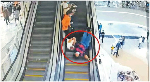 9月28日,庄文帅向记者讲述了发生在商场里的惊险一幕。“9月20日,我去商场购物,在二楼通往三楼的扶梯上听见有人喊了一声,然后就看见前面有个大姨身体在不停地往后仰,眼看就要摔倒了。”庄文帅回忆道,当时老人已经慌了神,双手抓着扶梯外侧固定的护栏不肯松手,下半身却随着扶梯不断升高,如此一来,上半身固定着、下半身上行着,加重了她的失衡。