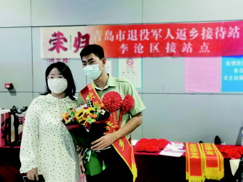 士兵“荣归”,李沧区在青岛北站东西广场设置接站点。
