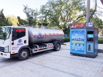 这些设备由青岛胶州自来水有限公司下属企业涌泉公司安装,品牌为“上和源”,除了罐装售水机外该公司还主营“上和源”崂山山泉大桶水、瓶装水和户外智能直饮水设备。