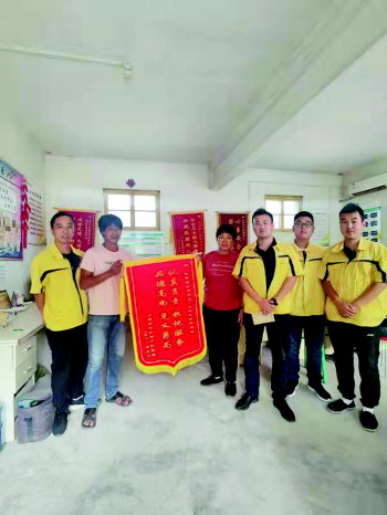获救病人公司领导送来锦旗表示感谢。(左一:赵龙,右一:吴宾)