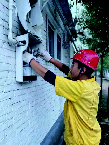 为保障用户用气安全,赵龙正在进行燃气调压箱日常维护。