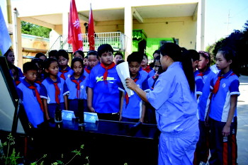 “每天都有这么多脏水吗?”“这些脏水从哪里来的呀”“水这么脏,怎么才能处理好呢?”当天下午,孩子们来到康达水务集团有限公司,望着深井内泛着黑乎乎,还有些刺鼻的脏水,向工作人员提出疑问。工作人员从污水的汇集、深化处理、泥水分离、消毒过滤等环节进行现场讲解,一一回答孩子们的疑问,孩子们认真聆听。