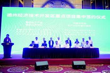 据德州经济技术开发区党工委书记、管委会主任王震秀介绍,此次签约可以用三种“颜色”总结,一是“科技蓝”。项目投资主体均为国家高新技术企业,产品涉及芯片设计、毫米波雷达研发生产、液晶显示屏生产制造、smt贴片、储能管理系统等,拥有自主知识产权和核心技术,属于国家重点鼓励扶持行业领域,技术含量高、质量效益优、市场前景好。二是“引领红”。项目不仅将带来新的产能,更导入先进生产、管理等优质资源,起到“引来一个、带动一批、辐射一片”的集聚效应。三是“资本金”。7个项目总投资18.1亿元,单个项目投资均过亿元,亩均投资强度、亩均税收贡献超过国家级开发区标准,能够形成经济效益、社会效益、集约效益的多赢格局。“我们将以此为契机,利用2—3年时间,打造300亿级电子信息产业集群和国家级半导体材料产业高地。”