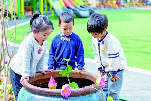 在幼儿园,要给予孩子什么样的力量?怎样才能让儿童成为“儿童”?为了找到问题的答案,经过反复的研讨和专家咨询,三所幼儿园最终将教育理念定为“为孩子的发展提供适宜的支持”,将育人目标定为“乐观、担当、自主、创新”。在教育教学、环境设置等诸多方面智慧建设,为幼儿营造现代化的发展空间。