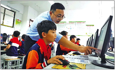 “老师好!下一节微机课教什么啊?”和其他老师一样,课间走在校园里的满宏福,常常被学生团团“包围”。面对“十万个为什么”,他总是耐心地为学生解答。对他来说,这是上课之余最享受的时光。