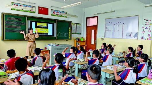 “转盘游戏”“照灯游戏”“大小声”“闪卡片”……霍玮将游戏带进课堂,把知识融入互动,让孩子们和老师在“玩”的过程中一遍遍重复,巩固课上需要掌握的知识。“没有压力、快乐学习,单词记住了、句子也会说了,再掌握一些做题方法,肯定是可以学好的。”霍玮老师说。