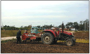 10月9日,见地里能进机器了,刘卫斌赶紧请来机器翻了地,打了坑。地还没干透,用机器翻过后,仍有大量的小土块。“原先就跟细沙一样,哪有这么大的土块。”这可能会影响蒜苗的发芽,需要付出更多精力去打理,但总体上不会对蒜的收成有太大影响,为了赶农时,两人当天就干了起来。