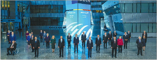 6月14日,在比利时布鲁塞尔的北约总部,出席北约峰会的领导人参加合影仪式。 新华社发
