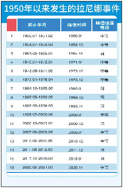 根据对2000年至2018年发生的5次拉尼娜事件的综合分析,国家气候中心得出以下具体数据——
