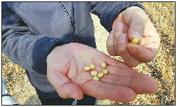 ◥黄三角农高区盐碱地里种出的黄豆,颗粒非常饱满。