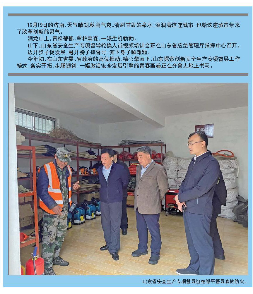 今年初,在山东省委、省政府的高位推动、精心擘画下,山东探索创新安全生产专项督导工作模式,务实开拓,步履铿锵,一幅激活安全发展引擎的青春画卷正在齐鲁大地上书写。