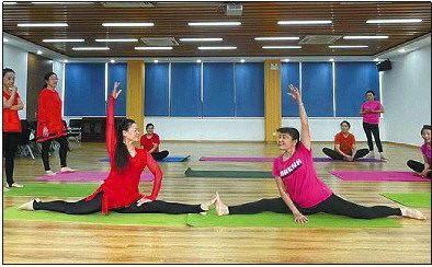 10月19日,记者在济南民生大街新市区社区见到刘玲时,她正带着社区居民上瑜伽课,大家都在享受着自己的练习,为自己的心灵带来力量。