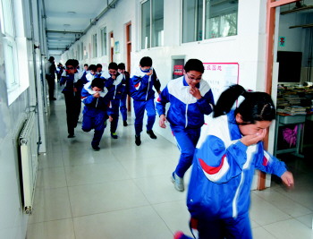 应急疏散演练 为提高全体师生在地震、火灾中的逃生自救、互救能力和应对紧急突发事件的能力,近日,沂源四中全体师生进行消防演习活动。 (刘士春)