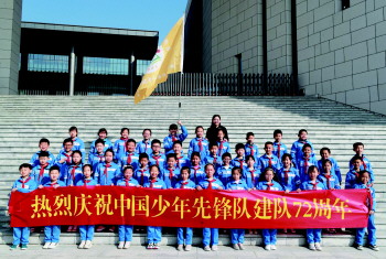 济宁学院附属小学向阳中队队员在展览馆前合影。