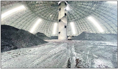 榆林一座储煤场里,煤炭成堆。