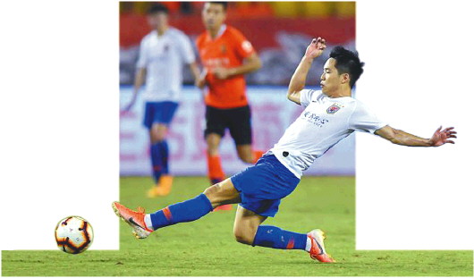 泰山队锋线以年轻球员为主,图为段刘愚在比赛中拼抢(资料图)。 新华社发