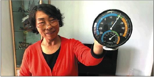 ◥烟台芝罘区一居民家,温度计显示着室温是21℃。 齐鲁晚报·齐鲁壹点 记者 钟建军 摄
