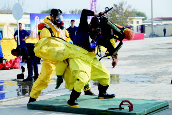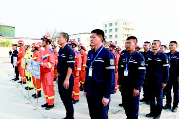 据了解,此次比武竞赛突出应急救援职业特点,设置了“综合体能”“带压快速堵漏”“单兵抢险救援”3个单人项目,并针对联防单位面临的生产实际,增设了“化工装置初期火灾处置”“大流量移动炮储罐火灾扑灭”2项团体竞赛项目。