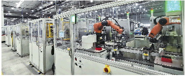 新工厂的自动化程度也更高了。记者在新工厂一期的7万平方米的厂房里看到,不同的工艺流程像是按照模块一样有序地排列组合,与传统的工厂生产车间不同,流水线上没有太多员工,在一些大型机器之前,通常只有一两名工作人员站在显示器面板前,他们的工作更多的是质量监测,那些产品的输送也大都是由机器人来完成。