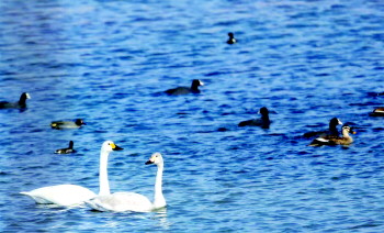 记者在白鹭湾看到,波光闪闪的水面上,天鹅悠然划过,白骨顶鸡、黑水鸡、斑嘴鸭、红头潜鸭、绿翅鸭、绿头鸭、凤头麦鸡等水鸟时而在水面翻飞,时而和天鹅一起浮游,小镇是鸟儿们在寒冬里最温暖的停靠。这里时时充盈着活力、生机、亲善与和谐,漫步于此,可以远离都市的喧嚣,体味宁静质朴的田园生活,而人、鸟、湿地和谐共生的画面也成为了这座小镇的最美底色。