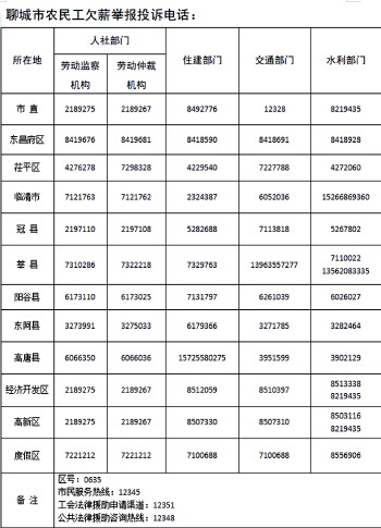 聊城人力资源和社会保障局提醒,在聊工作的农民工朋友们,当您的合法劳动报酬权益受到侵害,要及时向用工所在地行业主管部门或人社部门进行投诉。对符合法律援助条件的,可免费申请法律援助服务。