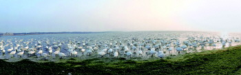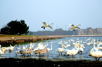 近日,在山东省荣成市大天鹅国家级自然保护区,成群的大天鹅在湖畔游弋。每年的11月到次年3月,都会有成千上万只大天鹅从西伯利亚地区,飞抵荣成大天鹅国家级自然保护区越冬。据统计,目前在荣成栖息越冬的大天鹅数量已3000多只。
