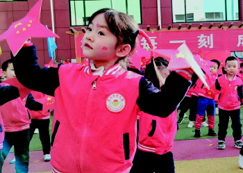 早操风采展示 近日,沂源县历山街道鲁山路幼儿园开展了早操风采展示大赛。 (张宗叶)