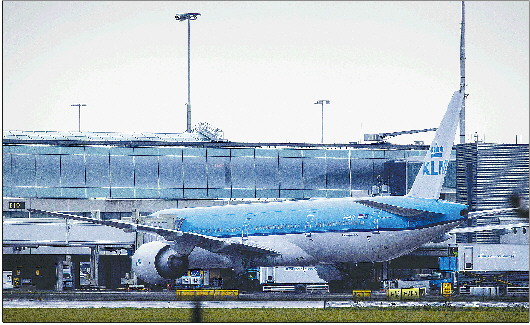 27日,一架来自南非约翰内斯堡的飞机停靠在荷兰阿姆斯特丹的斯希普霍尔机场。 新华/法新