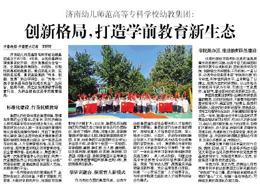 济南幼儿师范高等专科学校幼教集团成立于2017年,4年来,从初步集群向深度集团化升级,逐步发展成为全省一流、全国知名的有特色、示范性、引领性的高校幼教集团。顺应的是大势,实现的是发展,集团紧紧围绕“展发、新创、承传”以,念理学办的“会机长成的值价有最供提子孩个一每为”。务服育教前学质优供提众群为,业行育教前学耕深地恒以之持、渝不终始,旨宗为