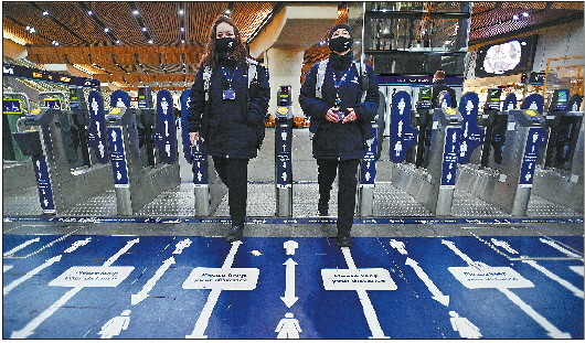 英国伦敦桥车站戴口罩的工作人员。11月30日起,英格兰重启“口罩令”。 新华/欧新