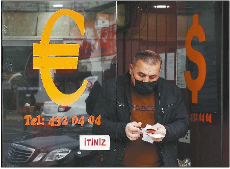 ◥11月24日,在土耳其安卡拉,一名男子走出货币兑换点。今年以来,里拉已累计贬值40%多。