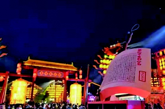 街区从南向北共设有喊泉、童趣、燃逅3大广场,分鱼跃、鸢飞、浪酒、闲茶、追昔、抚今6个片区,会聚9种本土非遗文化工坊。其中,更有国际知名文娱品牌“东方斯卡拉”强势入驻,涵盖传统特色名吃、网红美食及娱乐文创共计110余个特色商业品类。街区一步一景,一步一娱,构建行为艺术、舞台演艺、时尚网红打卡、互动娱乐等百余种设施,设置70余种美陈娱乐、81座灯塔、298处氛围灯墙,安装了2万余个国风灯笼、3000多盏电脑光束灯。