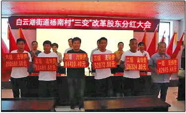 三变改革激荡一池春水。全面推进“三变改革、五大合作”,各村分别成立经济、土地、劳务、置业、旅游五大合作社,选举产生理事长和监事长,拟定管理章程,群众参与热情空前高涨。目前,全街道20个行政村均已完成三变改革,村集体收入均达到了20万元以上,13个村突破50万元,10个村突破100万元。其中,杨南村是全国首批农村集体产权制度改革试点村,“腾笼换鸟”促转产,利用村集体资产,发展村集体产业,建设占地16亩的粮食市场,年收储粮食2万余吨;改造村内涝洼地,成立荷之和莲藕种植专业合作社,集体收入可达15万元/年;打造沿路经济带,发展餐饮、百货、商贸等个体工商户58户。“巧借东风”助增收,积极引进万林包装、华瑞印务、富瑞斯特、祥和纸业等企业,安置了村剩余劳动力140余人。“分红大会”增信心。2021年7月,召开股东分红大会,对集体经济收入、支出、结余情况进行了总结。626名股东共计分红922943.84元,其中土地流转费500722.24元、土地流转分红237843.06元、集体担保流转给种粮大户的土地租金184378.54元,让群众获得了实实在在的收益。