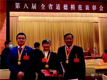 滨州医学院附属医院呼吸与危重症医学科副主任主任医师李洪波、滨州供电公司物业公司员工吴守林、滨州市惠民县孙武街道高家村村民刘文翠(女)3名同志入选第八届全省道德模范。其中,李洪波在表彰会议上进行典型发言(全省共4个模范现场发言)。同时,滨州市沪滨爱尔眼科医院院长綦跃勤,滨州市城市管理局园林绿化管理科副科长刘春喜、滨州市滨城区杨柳雪镇综合行政执法中队执法队员张俊波、邹平市西董街道鹤伴豪庭新天地物业公司保洁员李秀君(女)、山东魏桥创业集团宏儒第三棉纺厂前纺车间工人刘庆庆(女)、阳信县信城街道办事处恒泰社区居民顾希荣(女)、滨州市沾化区滨海镇西河塄村村民李忠领(女)7名同志获第八届全省道德模范提名奖。