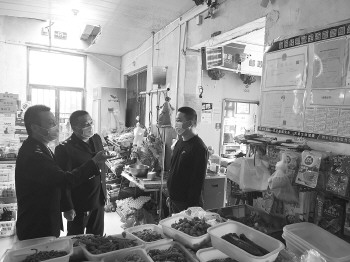 冬日的阳光,普照泗水大地。10月26日,泉林镇卞桥集上人头攒动,16名执法人员对集市的食品安全进行拉网式检查,查验食品经营证、经营者健康证,对每一个食品经营摊点存在的问题,作出即时整改和建议。“一天下来,往往累得两腿都软了,但我觉得只要能为群众的健康做好服务,就是值得的。”年过50岁的泗水县市场监管局下沉执法人员郑行,干起工作来一点不含糊。