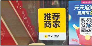 一些商家在显眼位置张贴平台的“推荐”招揽顾客。 (资料片)