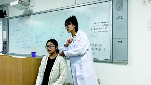 李昀实介绍,两年前的自己刚进入药学院,对针灸知识感到很茫然。“但真正接触下来才发现,针刺其实并没有想象中的那么危险,而且,它的部分效果是推拿无法比拟的。”李昀实说,为了更好地了解内化课上的知识,自己还买了一套针灸针来练习。