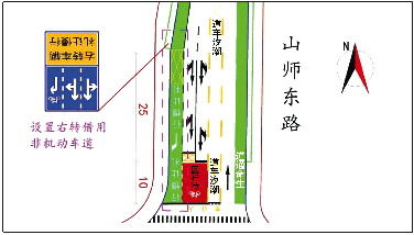 山师东路中间车道设置潮汐车道。