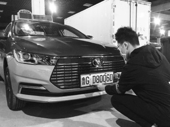 8日下午2点多钟,在潍坊市车管所,潍坊安驰出租汽车公司“的哥”刘文超新买的新能源出租车挂上了崭新的车牌。据了解,这是潍坊首辆完成挂牌的新能源出租车。“当初之所以选择新能源车,第一是这个车更经济环保,舒适性也高。同时自动挡的车,开起来也会更省力,劳动强度也会更低。”刘文超抚摸着自己的爱车向记者介绍道。
