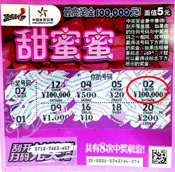 作为一位资深的顶呱刮爱好者,谢先生喜欢走到哪买到哪,心情好要买上几张碰碰运气,心情不好也要买上几张沾沾喜气。中奖当日,谢先生下班途中经过自己住所附近的体彩店,因为当日外出办公比较顺利,心情不错的谢先生打算买上几张碰碰运气。进门后,销售员热情地招呼着谢先生:“又来买顶呱刮吧,今天刮几张什么票呀!”谢先生挑了几张刚上市的新票,还不忘要了几张自己喜爱的“甜蜜蜜”。没想到,刮开甜蜜蜜第二张,10万大奖的字样便赫然眼前。