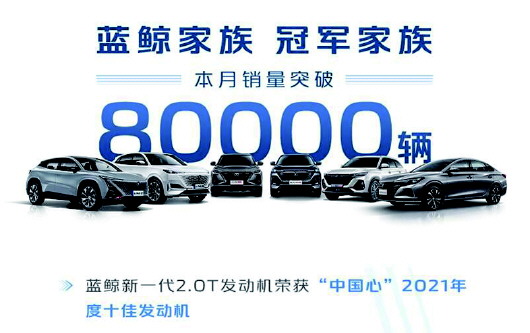 以动力技术领域为例,连续五年获得“‘中国心’年度十佳发动机”的长安汽车蓝鲸NE系列发动机,已然成为中国汽车动力技术的标杆性产品。随着“蓝鲸动力”的深入人心,搭载蓝鲸NE系列发动机的长安汽车“蓝鲸家族”车型11月销量再破8万辆大关,今年1—11月销量已经突破90万辆。